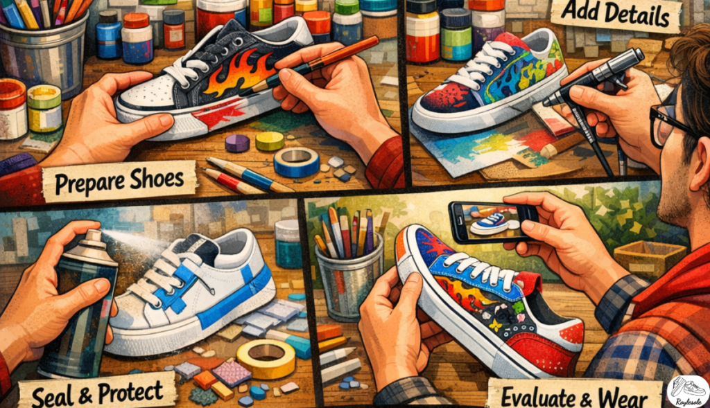 Humidity and temperature affect drying time, so adjust the environment if necessary. Multiple thin layers give better results than a thick, uneven coating. Drying properly prevents cracks, fading, and damage to your finished design. Plan drying time into the project schedule to avoid unnecessary delays. Proper drying ensures your custom sneakers look professional and last longer.